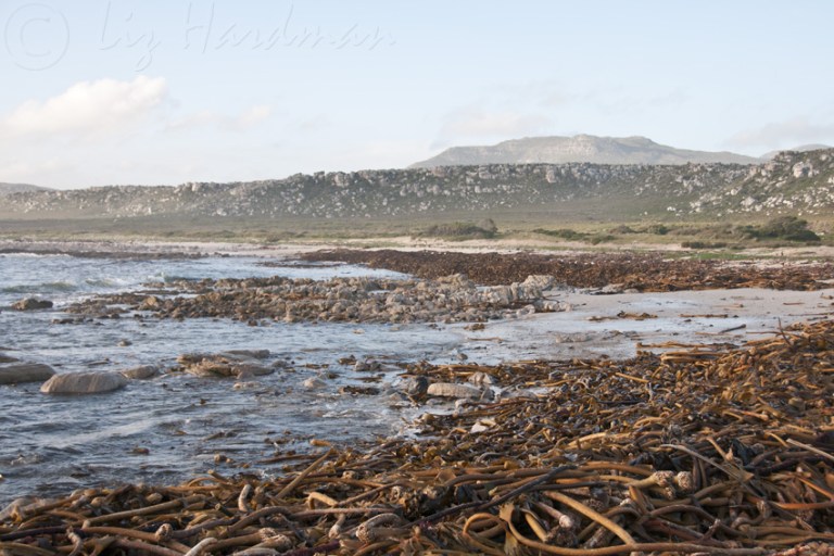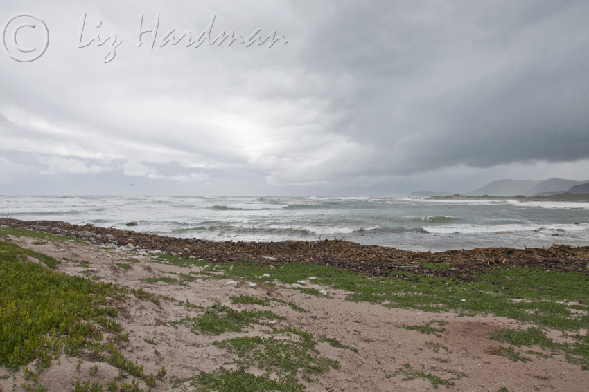 For the past month the peninsula has been wracked by low pressure frontal systems bringing strong gales and icy rainstorms. On the Atlantic side the seas have thundered in, an unfettered sweep with swells up to 9 metres. It’s a dynamic weather system – winter has been trying for many people, especially those living on the flats where there has been much flooding. But after the storms have cleared the air sparkles and there’s a beach i favour. Here the piles of kelp washed up high and attract much attention.