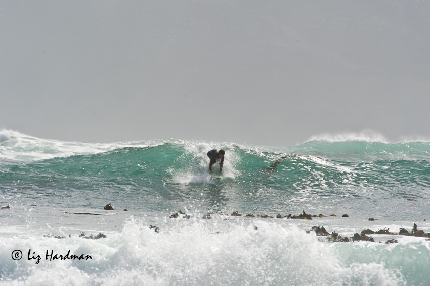 It is an amazing colour! But it changes depending on wind direction and groundswell turbulence. This surfing spot is Longbeach, Kommetjie – Cape Town. The surf has an odd kink, where the main thrust forms in a southwesterly direction, but there’s a deflection around the point. Further on the coast near Hout Bay is the renowned “Dungeons” – there the waves tower, and to see pix from there is to be truly awe inspired!
