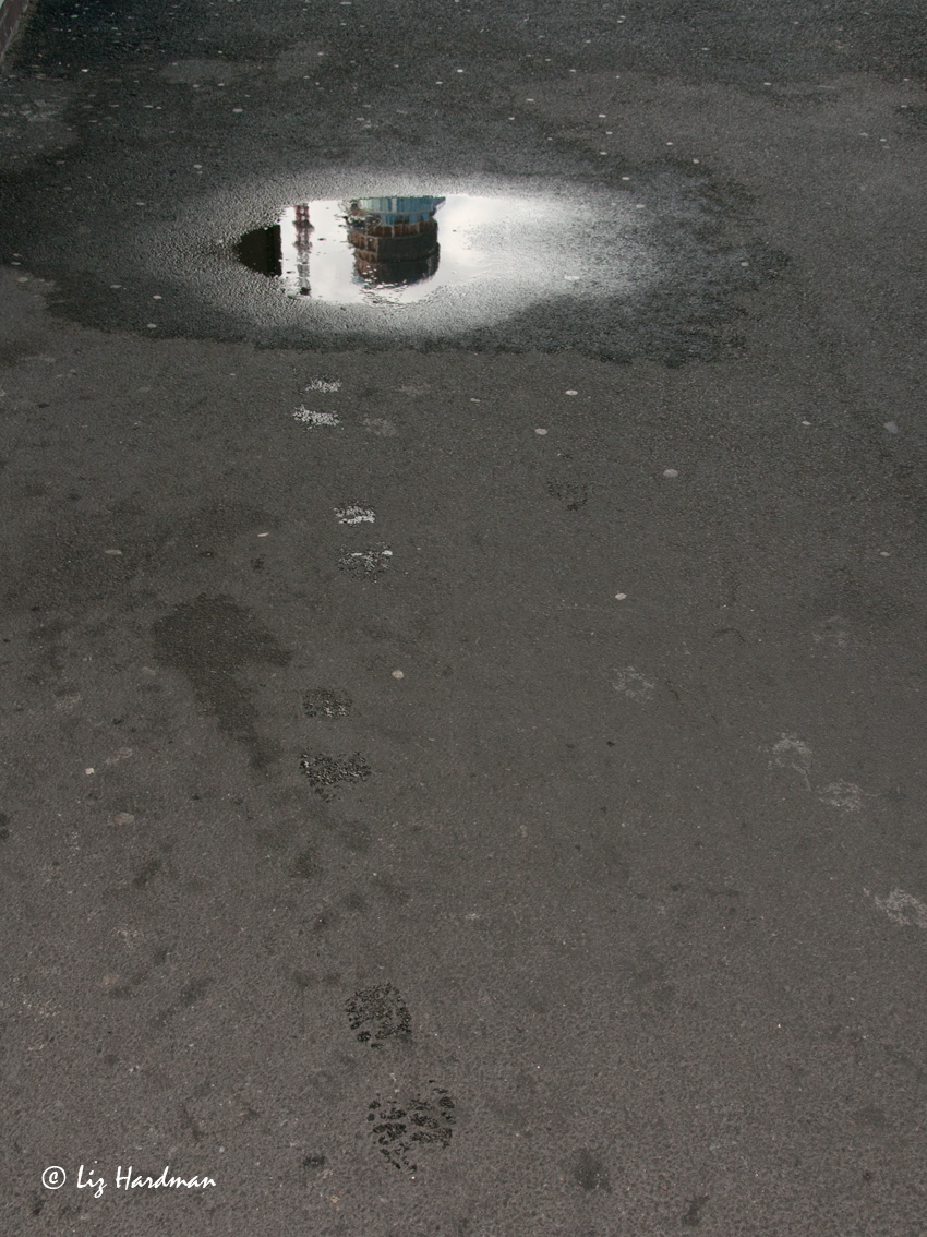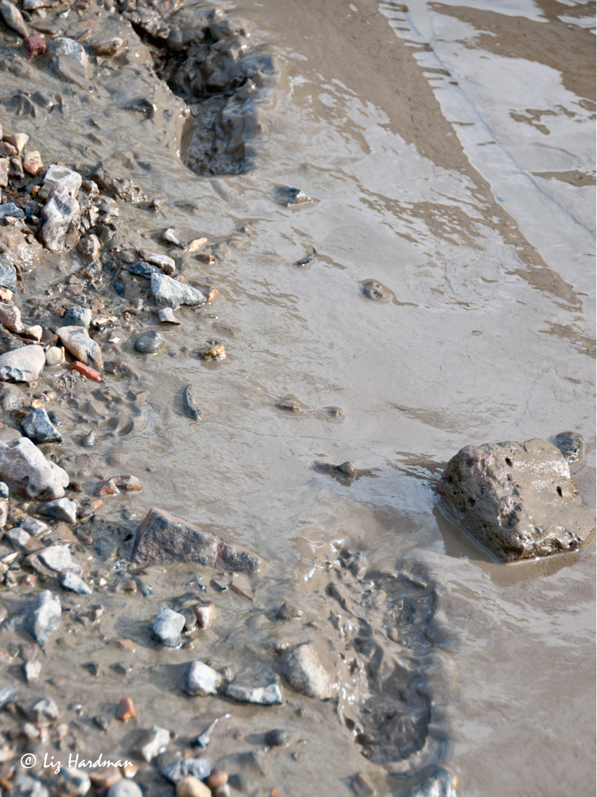 If there’s one item on which I stamp my mark, it’s got to be my favourite pair of hiking boots. Sturdy, like a trusty companion, we’ve covered the miles together. But lately, I’ve needed a lighter pair to pack for travelling. Taking the plunge, I purchased a pair of Merrell’s and finding ourselves back in London, I thought I would put them to the test at the same time as using them as the subject for the photo challenge. The idea was to leave Merrell prints in the sand besides the Thames. The tide was receding on a spring low and the pebbly beach beckoned….