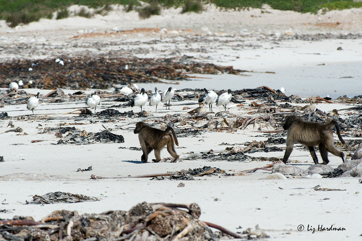 1. Hi MM…. let me introduce you to the beach critters – first up are the sacred ibis with their long pick bills.. then the baboons crossing the beach. They belong to the Old World Monkey group (with tails); Then the rag-tag black-backed gulls – always on the scavenge. My favourite buck – the Cape Bontebok – which is adapted to eating fynbos vegetation (pretty tough); and lastly the Egyptian geese – they’re all over the place – a very successful group of birds. Hope you’ll be back for another visit 🙂