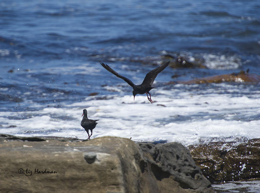 The birds forage for mussels, limpets and other molluscs along the intertidal zone.