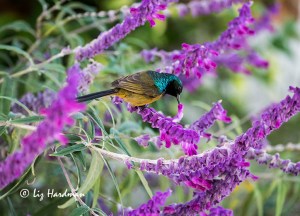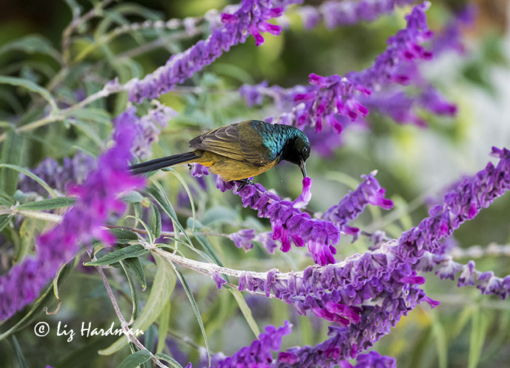 I’m mad about this little chap’s plumage, the purple colar and orange breast, emerald head. Such finery!