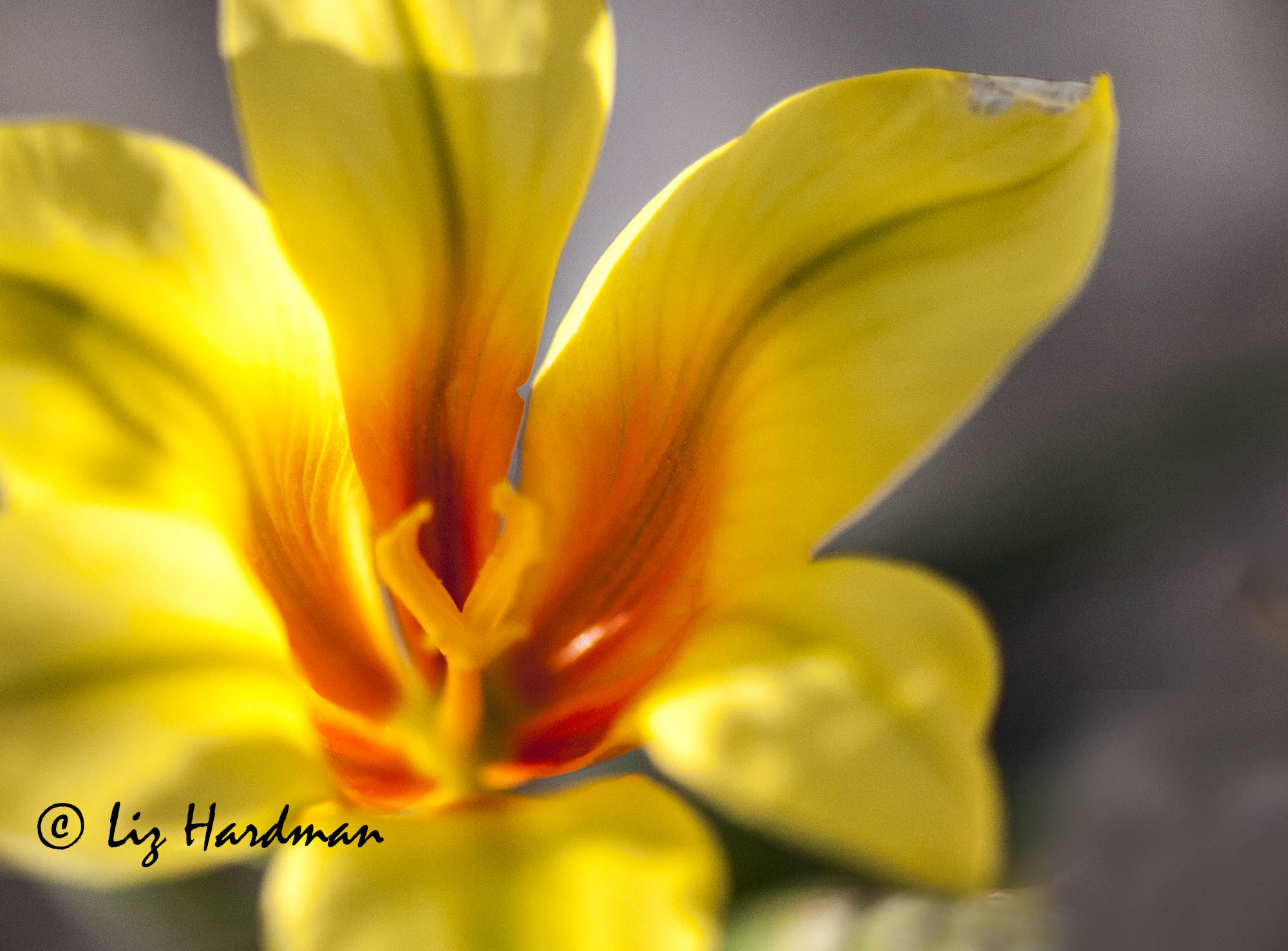 Here’s another, the yellow Ixia dubia.  A nuance of fire glows like embers through the petals.