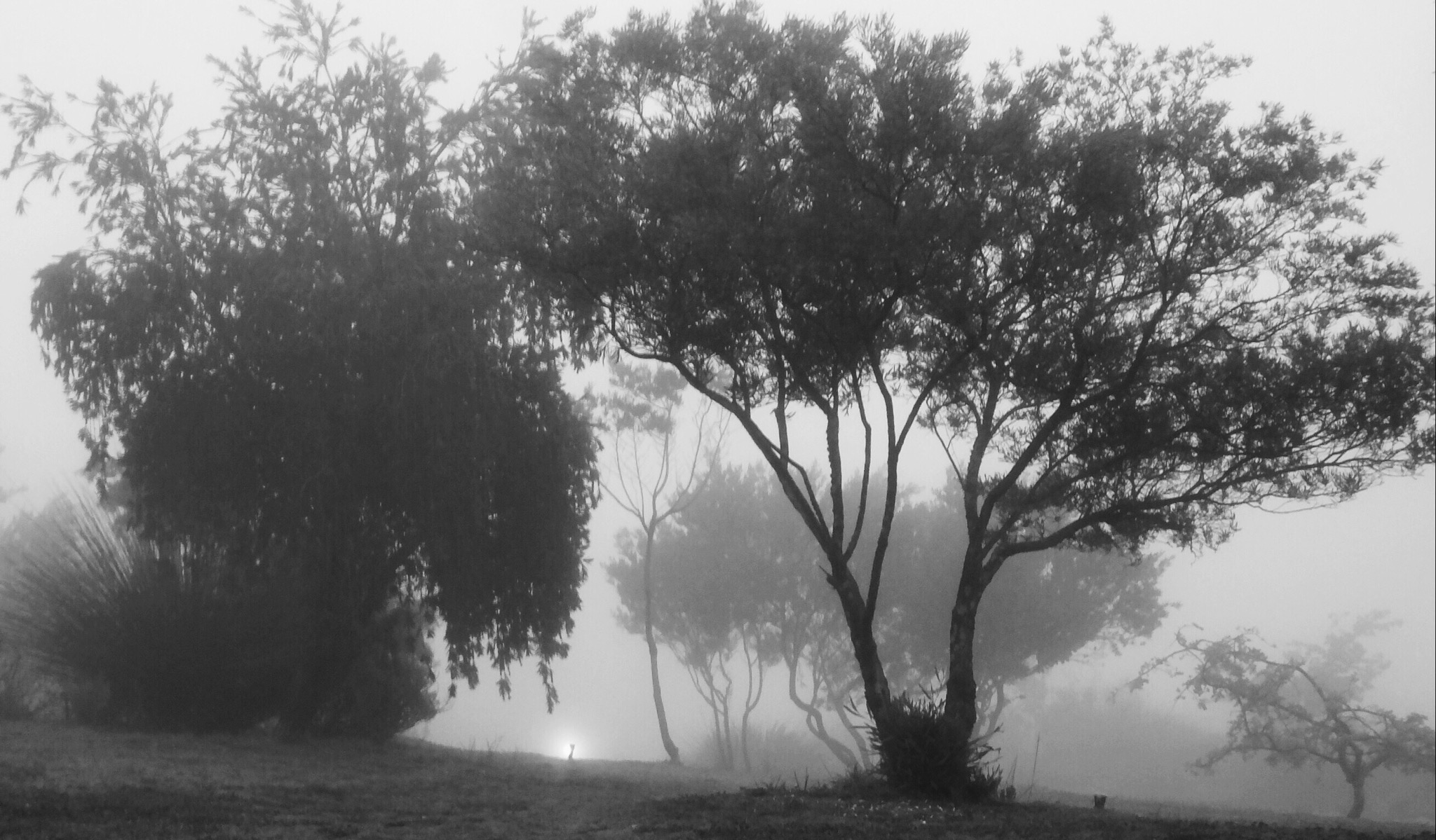 A surreal scene greets the morning as fog rolls in from the cold Atlantic Ocean and shrouds the land in a dense cloak. A muted and soft texture lends mystery to the scene.