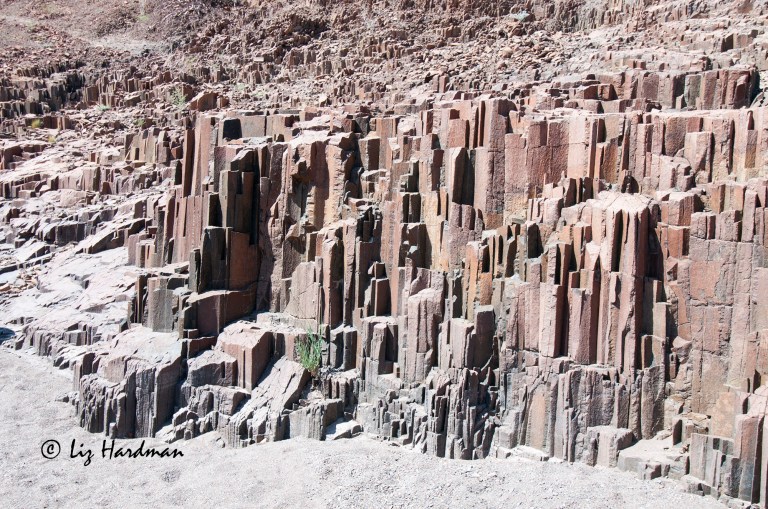 The rock formation is aptly named – the basaltic lava colums rise like organ pipes some standing 5 m high. The valley is small, though the rocks have a lofty appeal. The harsh light throws an unforgiving cast and the colours reveal shades of ochre and tan. There are four of us negotiating the downward path, stepping carefully as there is loose scree. There is a strange vibe here and the first bars of Edvard Grieg’s grand orchestral piece “In the Hall of the Mountain King” plays through my mind. I imagine Peer Gynt striding through the scene as the sound of falling rock shatters the calm. Into view comes a troop of baboons!