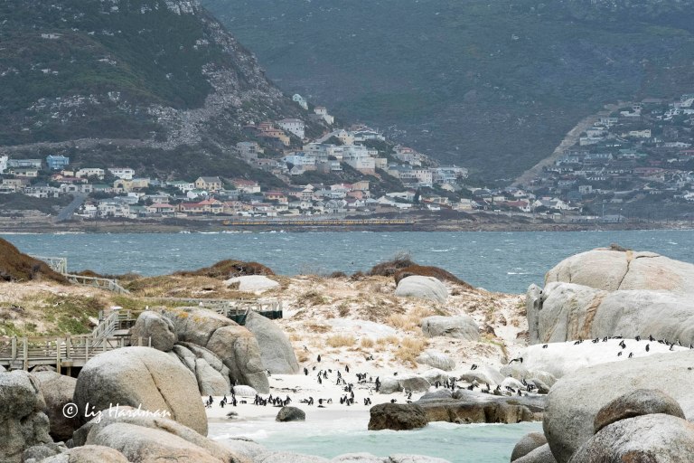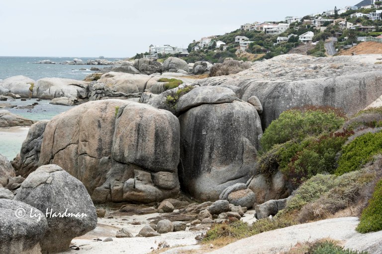 The Boulders area is dotted with impressively sculpted granite rocks sheltering discreetly placed sandy coves.  Here a colony of African penguin (Spheniscus demersus) have found a comfortable nesting area.   From just two breeding pairs in 1982 the population numbers have increased to about 2200 in recent years.