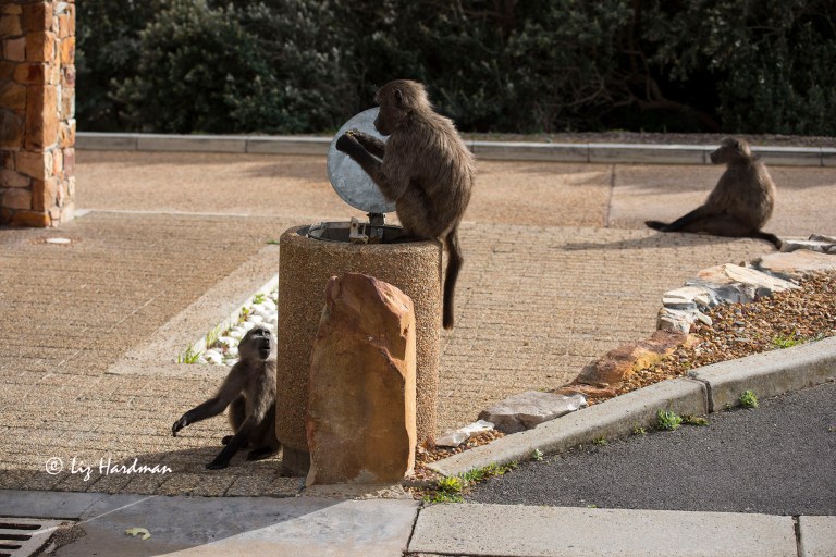 You wouldn’t believe the degree of heated debate over conservation issues involving the baboons here on the Peninsula! Through the decades there have been thorough discussions (workshops, PhD studies on various aspects, expert opinions, conferences, endless meetings between all and affected parties etc). The bottom line here in the urban space is the City’s legal responsibility towards it’s citizens in upholding its health and safety regulations. But give the City officials their due – they fund the conservation management in keeping the animals out of suburbs and on the mountain in their natural habitat. The compromise – the animals exist if their wild roaming conforms to the set ‘boundaries’.